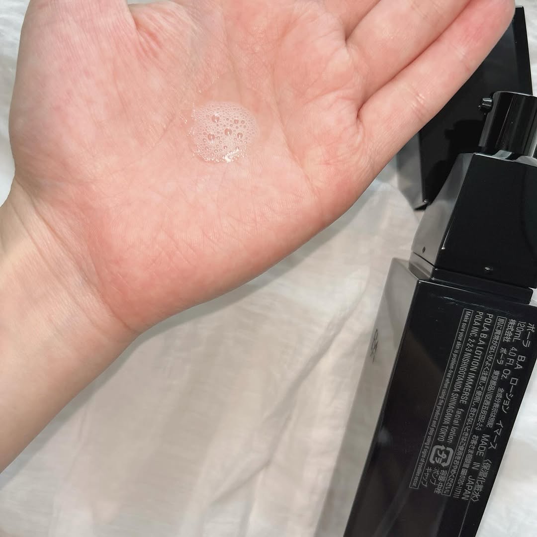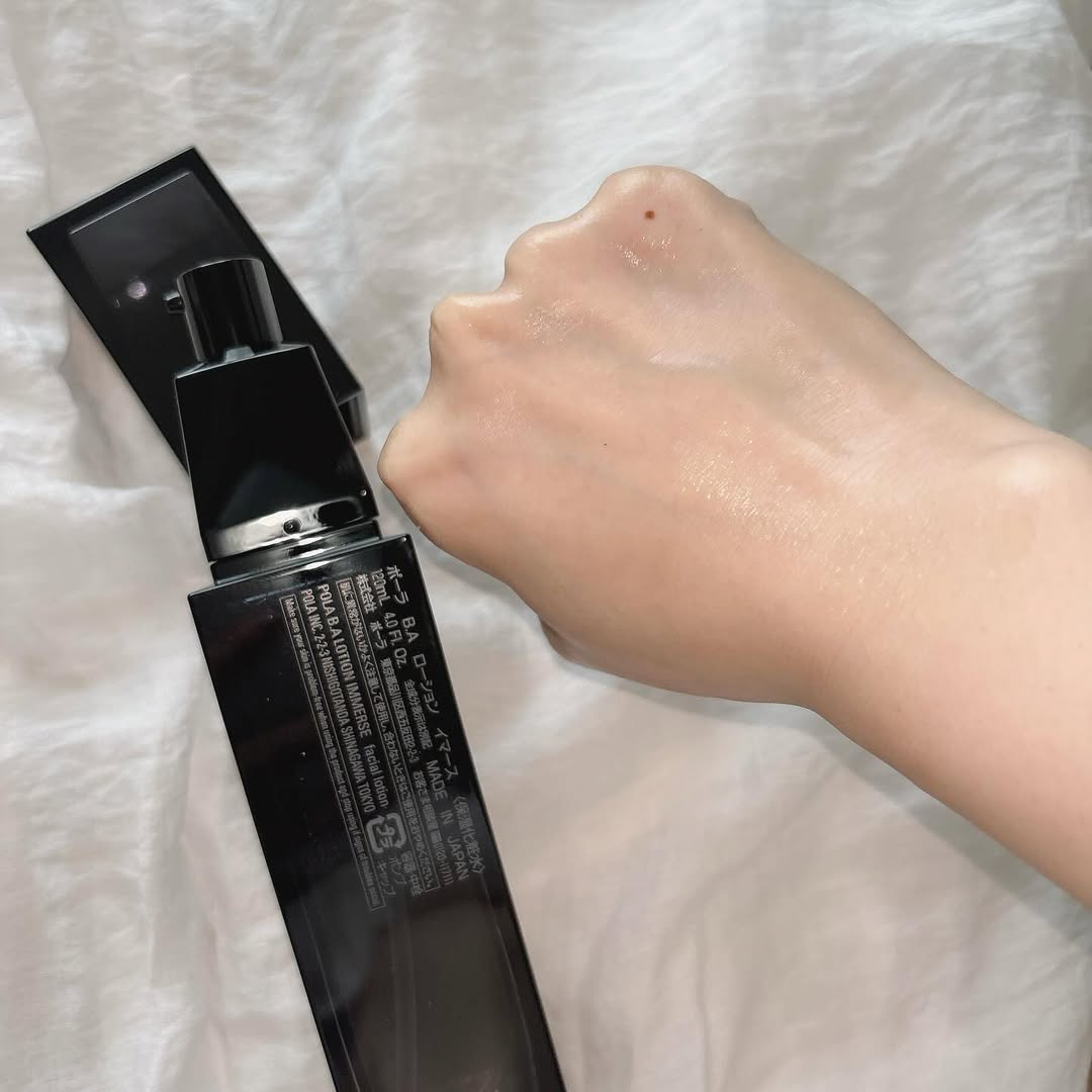 B.A ローション イマース 毛穴ケアできる ポーラの化粧水🖤 _x005F�テクスチャーは水のようにサラサラで軽いですが肌にのせると、しっとり感です🖤 糖化汗による大人の毛穴ダメージから 肌を守り、毛穴の目立たない、 透明感あふれるようなハリ肌を目指す美容成分配合の保湿化粧水!!! くすみをケアして、透明感が出たら嬉しいです☺️ _x005F�香りはフローラル系で、私の大好き華やかな香り!この香水が欲しい! ※糖化汗:汗の中に含まれるタンパク質と糖が結びつき、最終糖化産物「AGEs」が生成される。この汗を“糖化汗”とポーラが名づけた。 ※毛穴:角層の毛穴 ※肌:角層 ※毛穴の目立たない、毛穴をケア:うるおいにより角層の毛穴の目立ちにくい肌状態を保つこと ※くすみ:乾燥やキメの乱れなどによる_x005F�※美容成分:保湿成分_x005F� #PR #株式会社ポーラ #POLA #BAローションイマース #保湿化粧水 #大人の毛穴悩み #monipla #pola_fan
