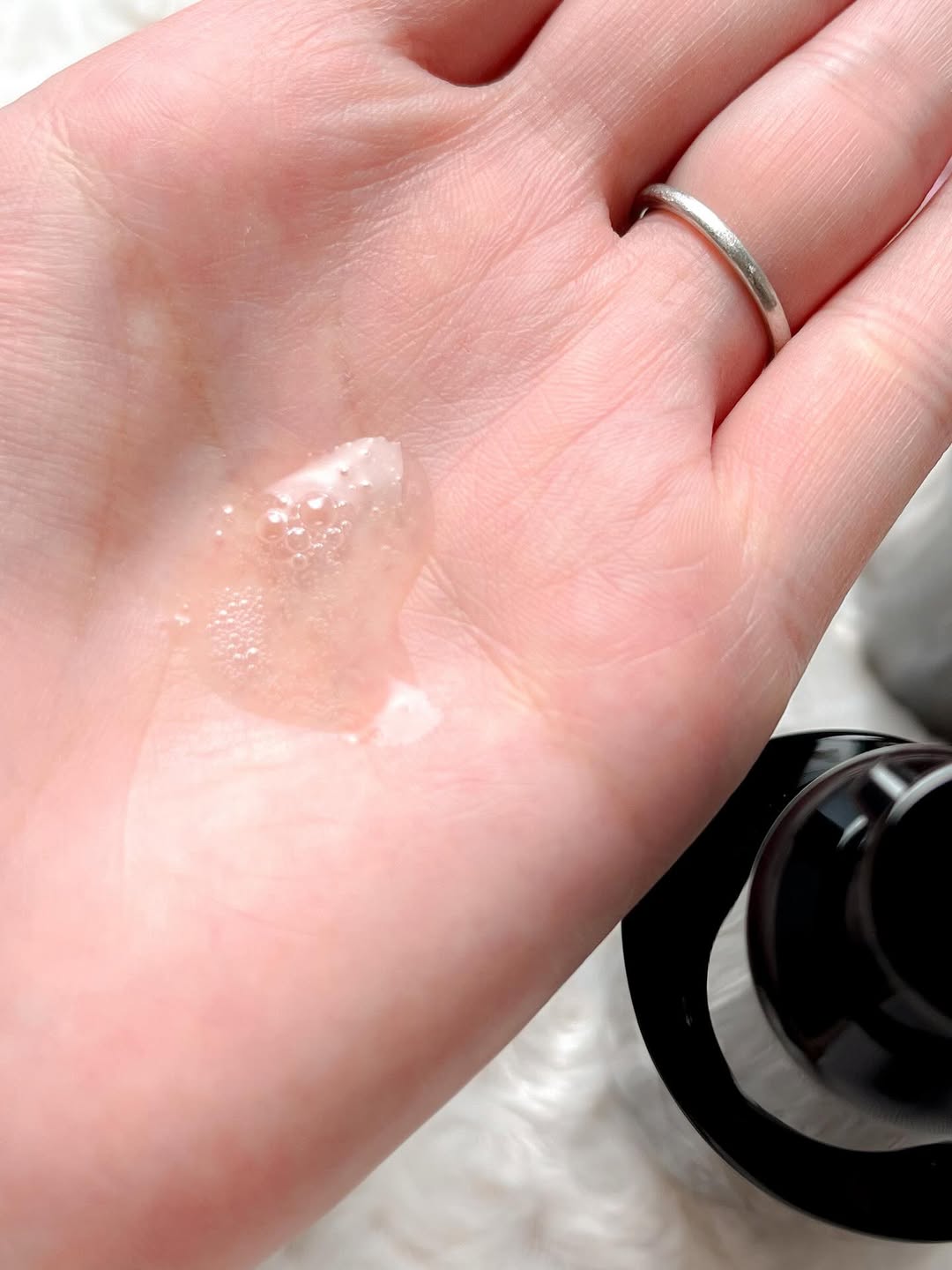 みずみずしいテクスチャーで肌なじみのいい使用感。