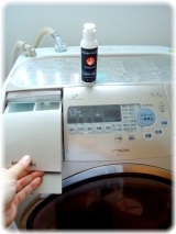 汗のニオイの気になる洗濯物をいれて、柔軟剤をいれる場所にポリジンウォッシュインをいれておけば、抗菌加工されています。