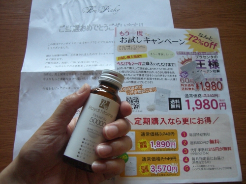 モニプラでピュアピンキーの新ロイヤルマリンプラセンタ特濃50,000mgドリンク戴いて飲んでみた(´∀`)♪プラセンタ特有の味があんまりしなくて、甘くて美味(∀)! 2012/09/30