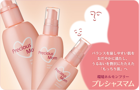 特にホルモンバランスがくずれやすい妊娠期のスキンケアとして生まれた「プレシャスマム」。女性ホルモンの分泌に影響を与える心配のある「環境ホルモン」を一切含まない、厳選された保湿成分を贅沢に配合しています。