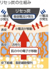 マイナス電位を持つリセっ炭を皮膚表面で摩擦することにより、