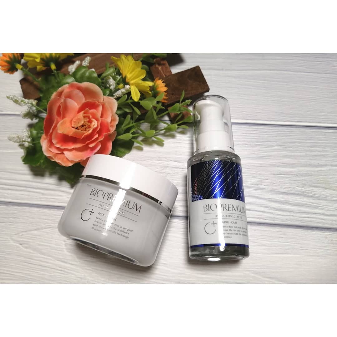 BIOPREMIUM オールインワンジェル 60g 4980円(税抜) 発酵ヒアルロン酸原液美容液 30ml 4000円(税抜) 「BIOPREMIUM」は多忙な現代女性のために誕生した、時短もエイジングケアも叶える「美白オールインワンジェル」と「選べる原液美容液」をセットにした基礎化粧品なの〜🥺‼️✨✨ 美肌菌と発酵パワーの2つのバイオテックが紫外線・乾燥・気候の変化などの外的要因や、日常のストレスによるダメージから肌を守り、揺るがない肌へと導いてくれちゃうの🌿高い浸透性と保湿力により忙しい朝もシンプルな2ステップでお手入れが可能なの🤭💕 オールインワンジェルからご紹介です😌 こちらは、これ一つで化粧水、美容液、乳液、クリーム、パックの5つの役割を 果たしてくれちゃうの😶✨ 蓋を開けてみると、中にスパチュラが 付属でついております🤭 2.3杯を手にとって馴染ませていくよ💙 乳白色したとってもまろやかなジェルで 伸びもとっても良くて馴染みやすいよ‼️ 最初つけた感じは、お肌に浸ってる 感じなんだけど時間が経つとお肌がね キメの細かさが断然違うことに気づく‼️ 触った感じは、サラサラしててしっとり してるの🥺💕💕 オールインワンでこんな仕上がりに なるのはすごいぞーー‼️‼️ これなら、ほんとに時短でスキンケアが 完了するからバタバタな私にはとっても 嬉しいーー☘️🤩☘️ オリゴ糖、乳酸菌発酵パワー、温泉水さらに15種類もの美容成分が配合されて いるんだって😍💜 くすみや、透明感、ハリ、潤いに嬉しい成分たっぷりだから嬉しいーー❤️❤️ 続いて発酵ヒアルロン酸原液美容液😌💕 たるみが気になる方にオススメなんだって☘️保水力の高い発酵ヒアルロン酸が キメを整えハリつや肌へと導いて くれちゃうんだって😆❣️ ぷっくりタイプになってて、 取り出してみると無色透明のとろみのある テクスチャの美容液が出てくるよ✨ こちらも、オールインワンと同じで 香りはしません😉‼️ オールインワンジェルを使い終わった後に 1,2プッシュ手に取り馴染ませていくよ〜‼️ハンドプレスしながら優しく 馴染ませていくよ😆 なんかね、不思議な使用感なのよ‼️ 最初は肌に残ってるけど、 すーっと馴染んでいくのよね🥺💙 最初の1日目で、お肌の調子が全く違う〜‼️‼️😜💚 口元のカサカサがないのが嬉しい🥺💜 #バイオプレミアム #biopremium #スキンケア #オールインワンジェル #発酵原液美容液 #美肌菌 #エイジングケア #monipla #premiumcosme_fan