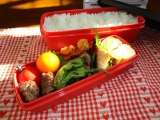 20120802 102626 お弁当と毎日1杯エステ茶 テーマ:お弁当 旦那弁当です 卵焼き 塩麹漬け鶏モモ焼き れんこんのてんぷら ししとう ハンバーグ赤ワイン煮 プチトマトがでかすぎる … 2012/08/02