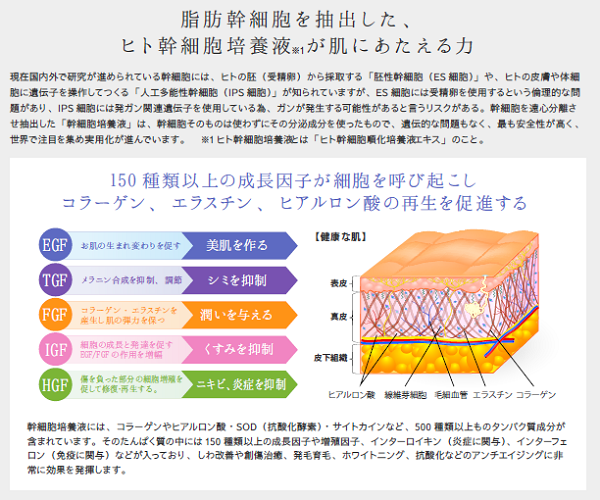 ヒトの幹細胞から分泌される幹細胞培養液コスメ