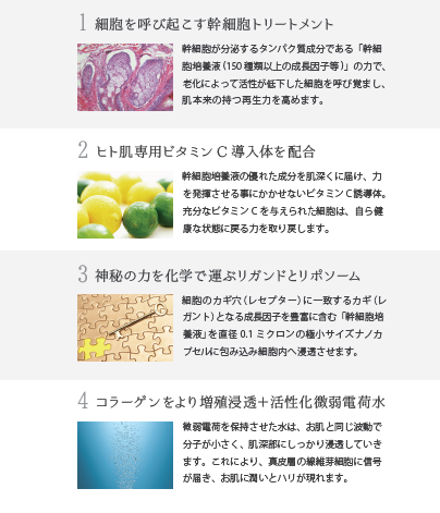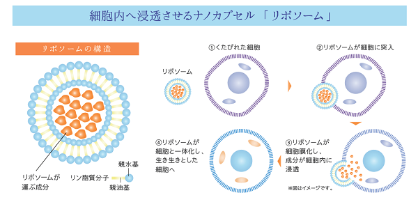 老化して傷ついた肌細胞の働きを補い、内部からの若返りを図ります。