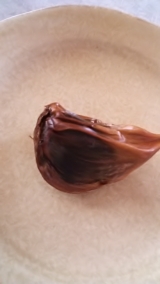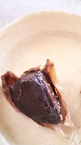 青森県産熟成黒にんにく《源喜の一粒》 中身はこんな感じです 熟成黒にんにくは、海洋深層水につけこみ、温度と湿度だけで熟成させてつくるそうです 黒くなるまで約1か月かかるそう にんにくは青森県産の福地ホワイト六片が使われています 安心ですね 皮をむいて頂きます 気になるにおいですが、… 2017/07/11
