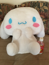 ドンキでふらりしてたら シナモロール 超超ビッグぬいぐるみ のUFOキャッチャーを 見つけたので挑戦 300円くらいで取れました♪ 2018/02/16