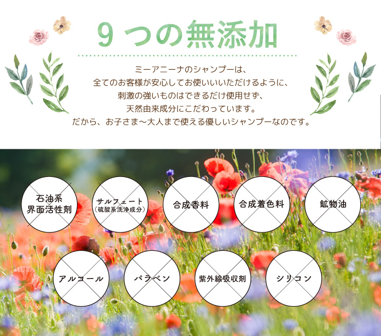できるだけお肌に負担のかかる成分を省き、安心できる製品のお届けを目指しております。