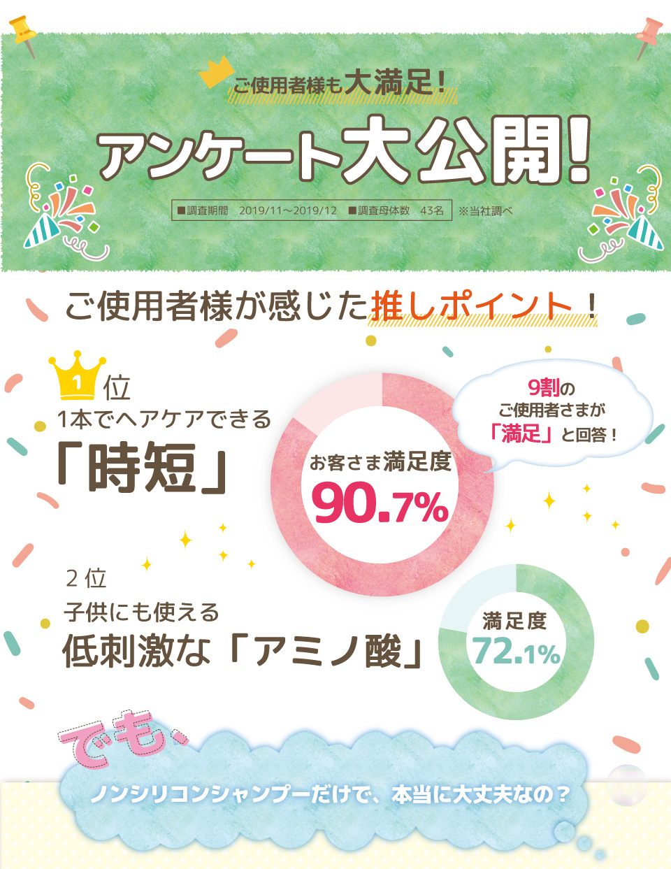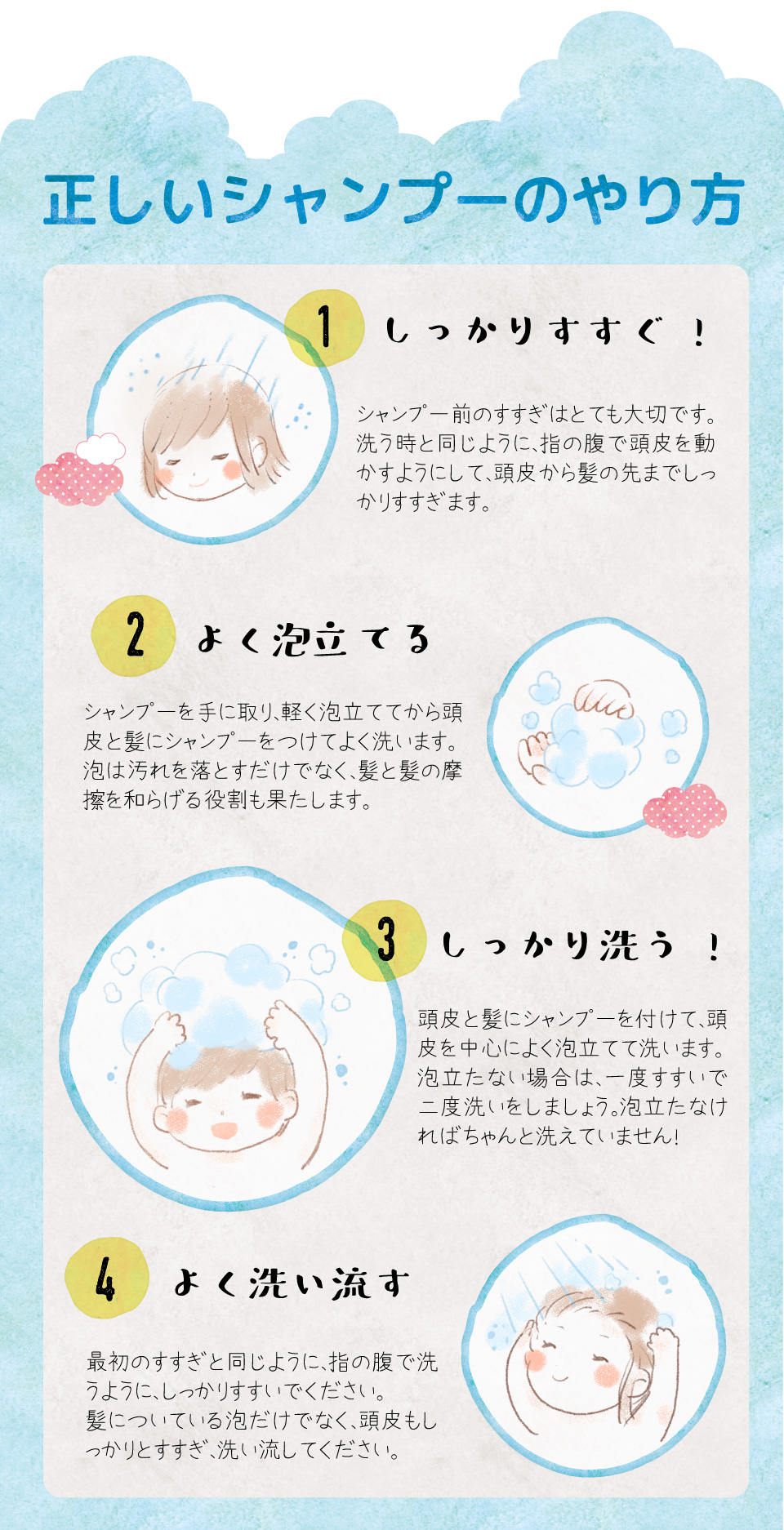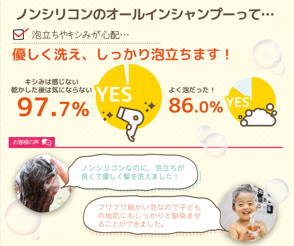 アミノ酸洗浄成分+天然の洗浄成分(ソープナッツ)の優しい泡で洗い上げ、これ一本でしっとりサラサラな仕上がりに。