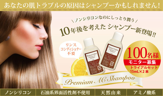 10年後を考えた髪と頭皮、そしてお肌にも安心の天然系アミノ酸ノンシリコンシャンプー。お肌のトラブルが気になる方にもオススメのトライアルセット