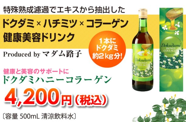 美容に♡健康に♡若さに♡女性に♡オススメ!! 特殊熟成濾過でエクスから抽出したドクダミ × ハチミツコラーゲン 健康美容ドリンク「ドクダミハニーコラーゲン」ドクダミの成分をあますことなく抽出した健康美容ドリンクドクダミなのに臭みがなく、まろやかな味わいだから… 2012/08/14