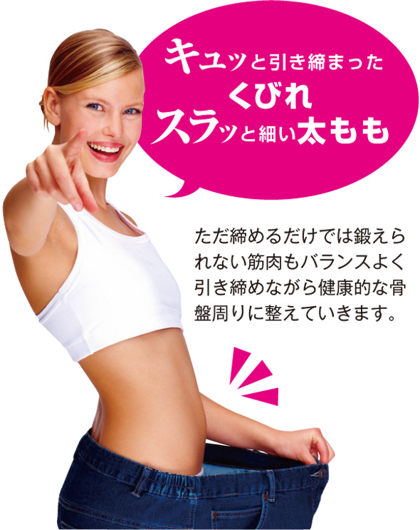 ただ締めるだけでは鍛えられない筋肉もバランスよく引き締めながら、健康的な骨盤まわりに整えていきます。