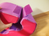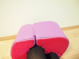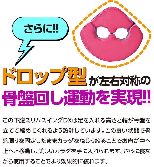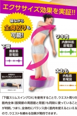 ちょっと変わった形のエクササイズクッションで両足に装着をして、下部の曲線部で左右にころころと反復運動をするだけで、骨盤周りの筋肉を効率的にバランス良く運動を行うことが出来ます。(豊橋創造大学:筋電図結果有り)