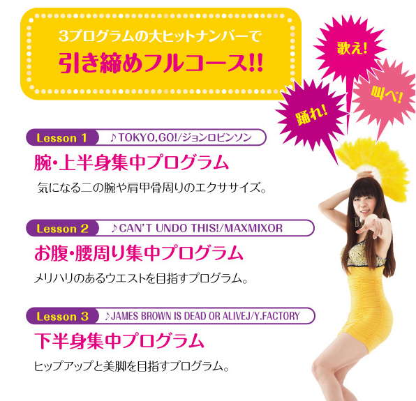 ディスコクイーン荒木師匠のジュリ扇エクササイズ!目指せメリハリディスコクイーン ディスコクイーン荒木師匠のジュリ扇エクササイズ バブル時代にタイムスリップ!エクササイズ ダンスDVDと特殊ジュリ扇がセットになったジュリ扇エクササイズで 20年前のメリハリボディーを取り戻す! レビュー数 : 1 |