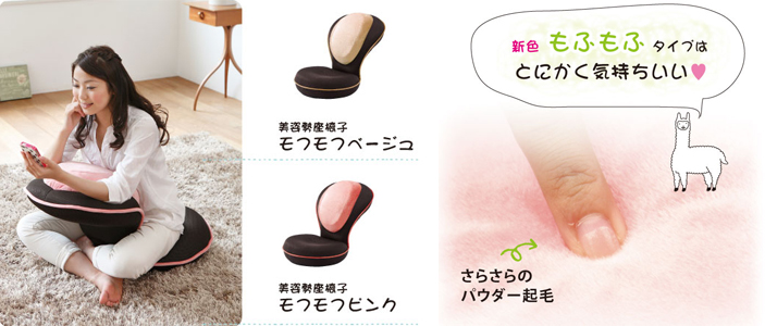 うたた寝・背中ストレッチ・美姿勢での座り・ゲームや読書のおともなど、多彩な用途で大人気の「背筋がGUUUN美姿勢座椅子」。モフモフタイプは起毛の記事が肌さわりよく、見た目も可愛いバージョンです。