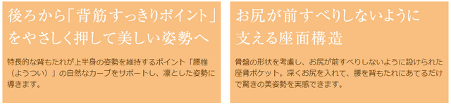 コンパクトながら、骨盤から腰椎という「座り姿勢」のポイントをしっかり押さえ、凛とした姿勢を楽に維持してくれます。