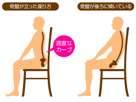 下美しい姿勢、すなわち重心位置が身体の中心にあり、骨盤が立った状態で座る姿勢こそ、長時間疲れにくい。