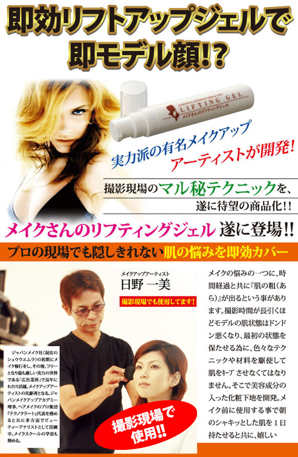 メイクアップアーティストが撮影現場で使用!メイクでは隠し切れないタルミ、小じわを即効カバーする特殊ジェルです。