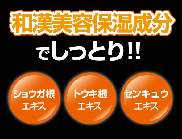 保湿成分(ショウガ根エキス、トウキ根エキス、センキョウエキス、オタネニンジン根エキス、ヒアルロン酸Na、コラーゲン)