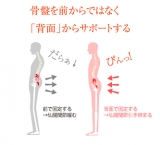 動滑車(プーリー)の原理によって4倍のパワーで骨盤(仙腸関節)を引締め、中臀筋を刺激サポートするベルトです。仙腸関節を後ろ側から引締めることで骨盤位置を補整、中臀筋を刺激サポートすることで、歩行・姿勢を安定させます。