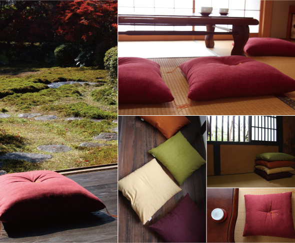 縁起の良い、末広がり(八の字)であえて少し小ぶりに。ちゃんと正座できて、イスでもはみ出ない。イス生活の腰楽背当てに、最適なサイズ。