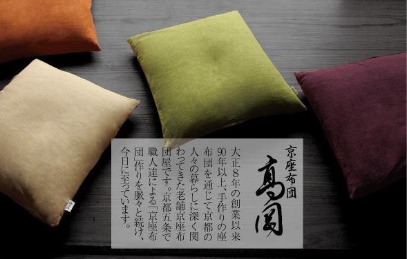 【京座布団高岡】座布団と幸せを運ぶ、山田たかおの幸せ小座布団 座布団と幸せを運ぶ、山田たかおです。「たかお」と「たかおか」のあわせ技。本当に、いい座布団ができました。 座布団運んで30年記念 山田たかおさん監修。老舗こだわりの逸品。これからのお年寄りの暮らしに「ぴったりサイズ」。使い勝手がいいから、永く愛せる、付き合える。 縁起の良い、末広がり(八の字)であえて少し小ぶりに。ちゃんと正座できて、イスでもはみ出ない。イス生活の腰楽背当てに、最適なサイズ。 しっかり正座もできて膝がラク。 背もたれにぴったり。腰が楽チン! こだわりの京座布団。 ●三方とじ ●角ふさ ●かまぼこ型でふっくら ●こだわりの七割綿 【京座布団屋高岡】大正8年の創業以来90年以上、手作りの座布団を通じて京都の人々の暮らしに深く関わってきた老舗京座布団屋です。京都五条で職人達による「京座布団」作りを脈々と続け、今日に至っています。 レビュー数 : 6 |