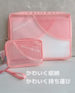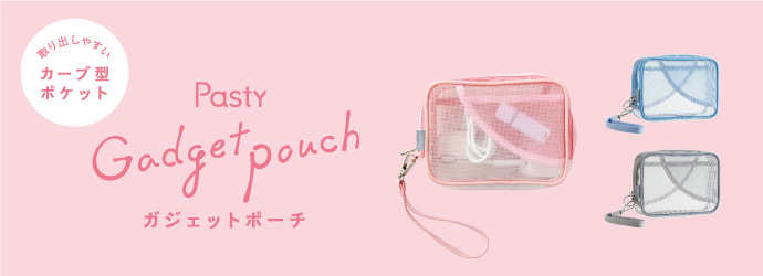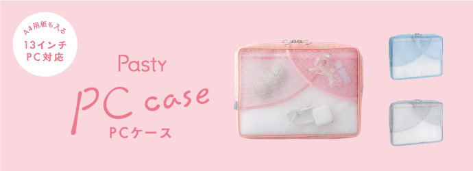 「パスティ」シリーズのかわいいパステルカラーの世界観をそのままに、本体は透け感があり、軽量なメッシュ素材を使用。中身を確認しやすい利便性はもちろん、本体上部に大・小2つの内ポケットが付いていて分類しながら収納可能です。ポケットにカーブが付いているので小物が奥に潜り込まず、さっと取り出せます。