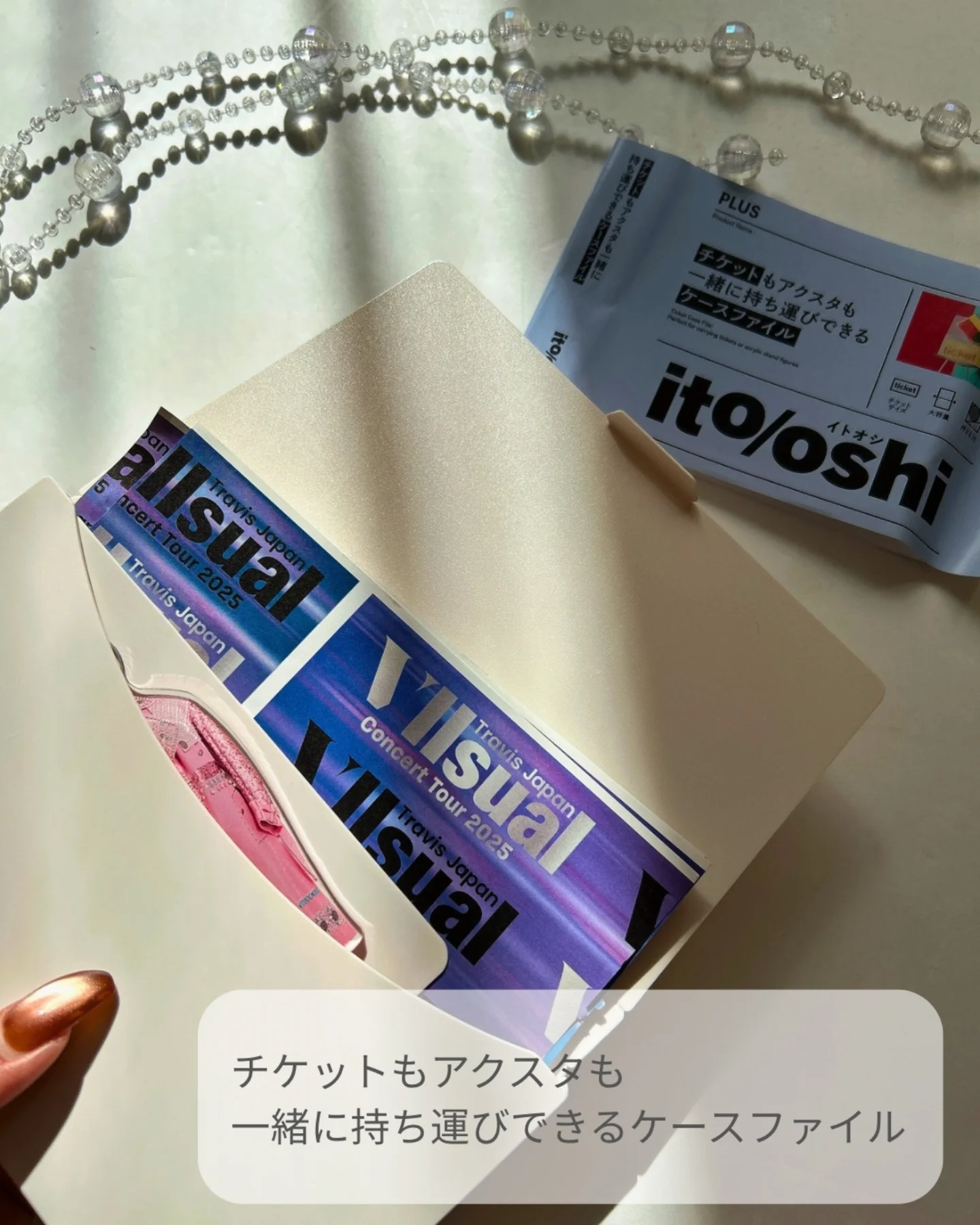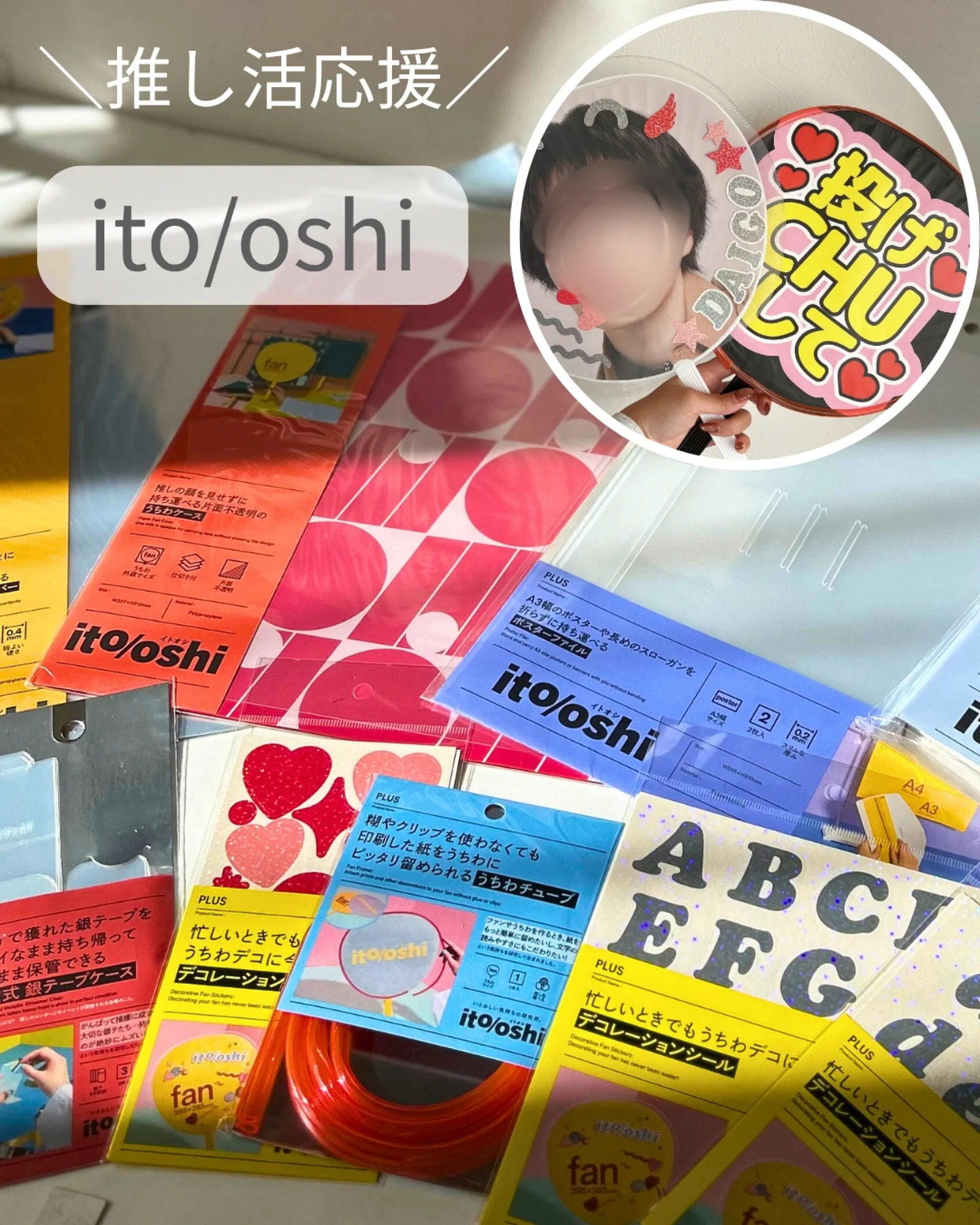 推し活大好き💚❤(ӦvӦ。) こちらは推し活応援製品 \「ito/oshi(イトオシ)」/ まず、推しのライブでなくてはならない存在のうちわに関する便利グッズ! ✅️糊やクリップを使わなくても印刷した紙をうちわにピッタリ留められるうちわチューブ →今までうちわに糊で貼ってファンサうちわをその都度作っていたんだけど、ファンサうちわの数増えすぎてて🤣 これなら印刷した紙をはめるだけだからうちわ増えなくて助かります! ✅️うちわ本体はそのままにカバーの上からデコレーションできる両面透明のうちわカバー ✅️忙しいときでもうちわデコに今すぐ使えるデコレーションシール (図形タイプ 文字タイプ) →不器用だからデコうちわ作れず(面倒で作りたくない気持ち半分😇)、これならシール貼るだけでかわいくなった! ✅️推しの顔を見せずに持ち運べる片面不透明のうちわケース →しっかりしたケースで折れたりしにくそう!うちわの保護ビニールごと入れられる! カラバリ豊富で、メンカラで選べるよ〰️❤ その他の便利グッズ! ✅️A3幅のポスターや長めのスローガンを折らずに持ち運べるポスターファイル →ポスターは普段持ち歩かないんだけど、家にあった円盤の特典ポスターとかキレイに収納できた! ✅️チケットもアクスタも一緒に持ち運びできるケースファイル →チケットが折らずにピッタリたくさん入る✨シンプルなケースなのでデコったらもっと可愛くできそう! ✅️現場で獲れた銀テープをキレイなまま持ち帰ってそのまま保管できる組立式銀テープケース →銀テ取れたらいつも丸めてカバンにポイ😂折れ目がつくこと多々💧 ケースがあればキレイな状態で持ち帰れるのがいい!ただ、組立てが少々難しく、私は終演後にこのケースへ収納する時間がないかもしれない(退場を急かされることもあるので)😂 紙素材等でもいいのでもう少し組立てやすければありがたいと感じました。 推し活されてるみなさん、「ito/oshi(イトオシ)」ぜひチェックしてみてください❤💚 #PR #プラスステーショナリー #推し活 #推し活グッズ #イトオシ #プラス #monipla #psc_fan