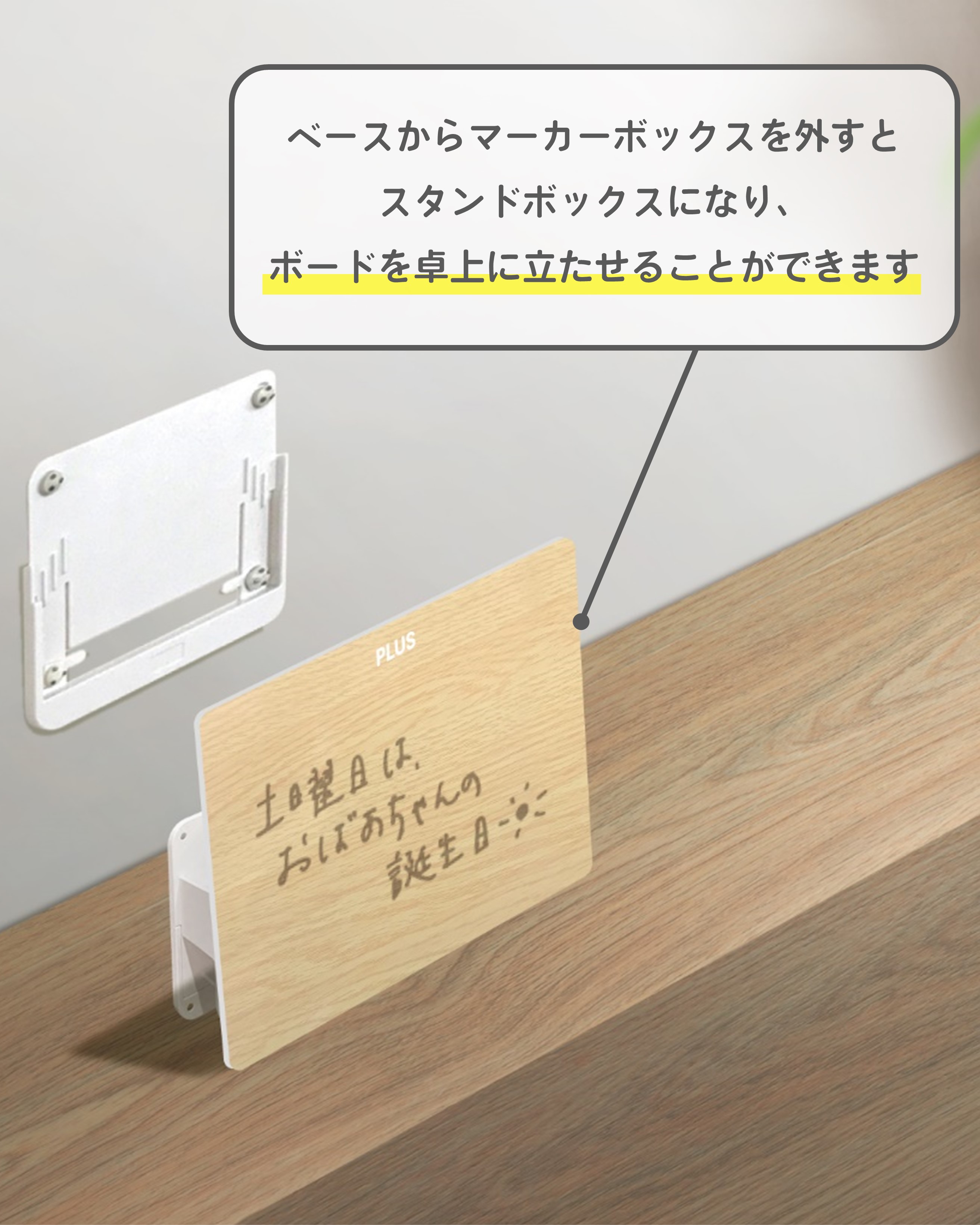 マーカーボックスをスタンドにして、掲示板や伝言ボードとしてもお使いいただけます。
