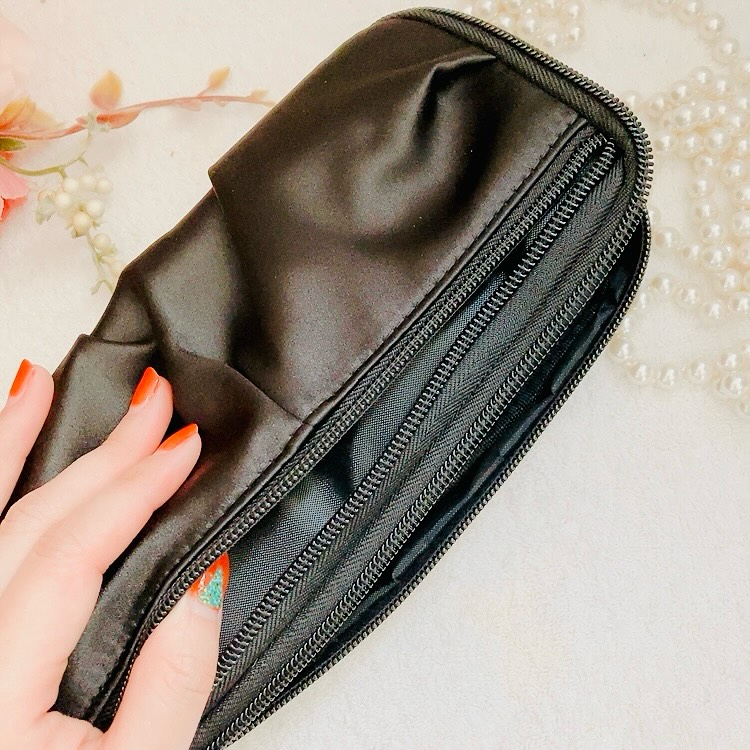 目を引く光沢感のあるドレープデザインに加え、ドレープポケットが広がることで厚みのあるアイテムも収納することができる、高い収納力と機能性を兼ね備えたペンケース。