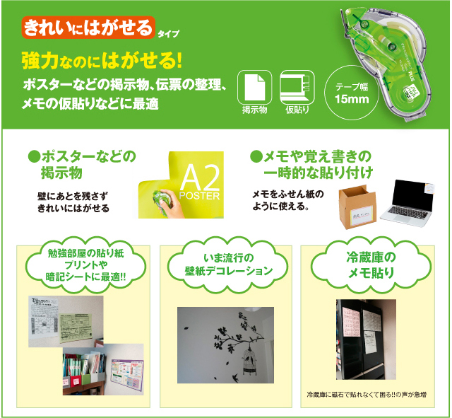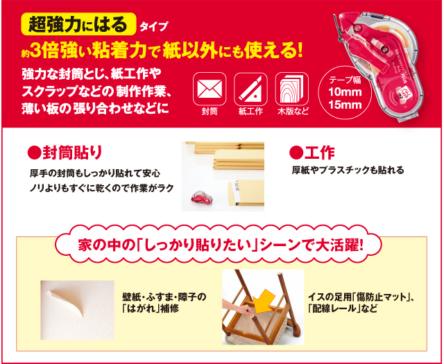 <超強力にはるタイプ>と<きれいにはがせるタイプ>