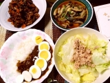 土曜日の夕飯昨日の残りのカレーonゆで卵ツナレタスサラダ牡蠣とキノコと豆腐のあんかけ豚肉と人参ピーマンの味噌炒めな、なんと明日は旦那の友達の結婚式なのに旦那は熱があるΣ(゚д゚lll)372度ちなみに、私も熱あり37度※私は出席しませんがしかし、私と旦那は食欲あるので大丈夫そうだ義母が作… 2014/10/25