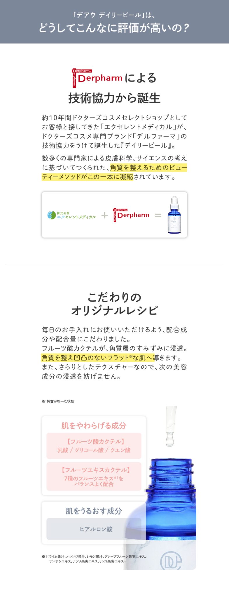 【ドクターズコスメ】 お肌にやさしい角質ケア美容液“デイリーピール”です。