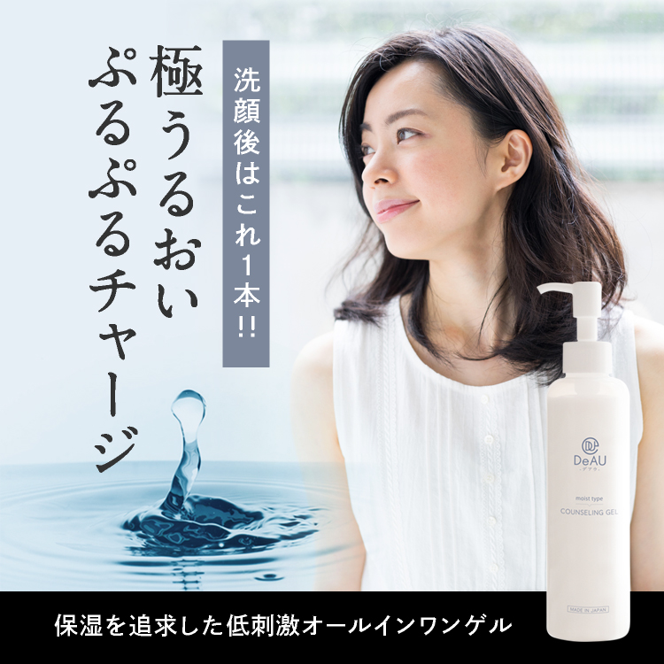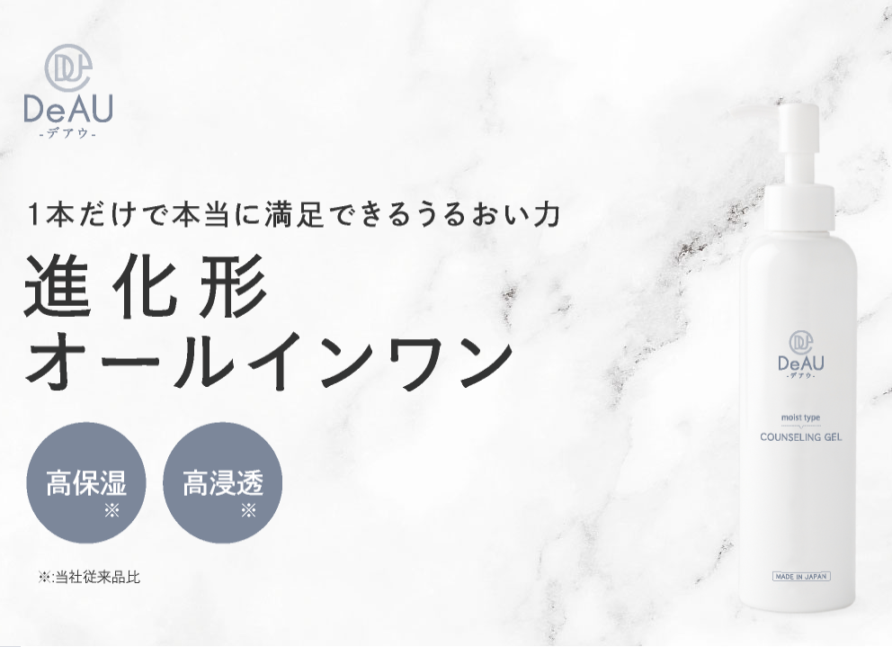 肌のお悩みにお応えする『DeAU(デアウ)』のオールインワンゲルです。洗顔後はこれ1本でお手入れ完了。スキンケアの基本である「保湿」に徹底的にこだわりました。