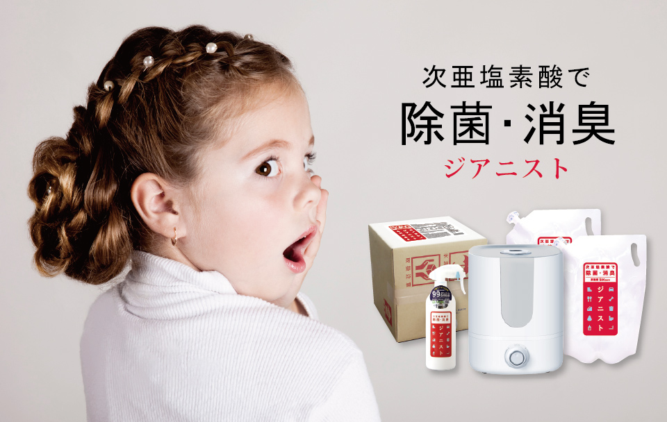 「ジアニスト」は水と塩、二酸化炭素を使い「特許製法」により生まれた微酸性の次亜塩素酸です。