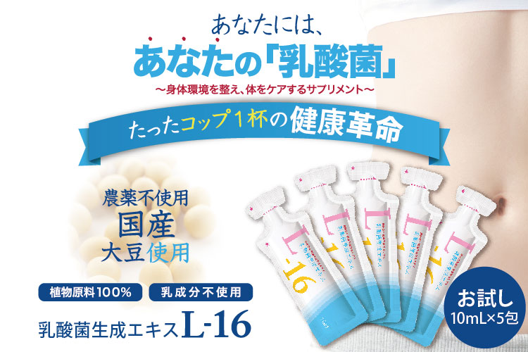 L-16は、毎日スッキリしない、健康・美容を気にする方におすすめの身体環境を整え、体をケアするサプリメントです。