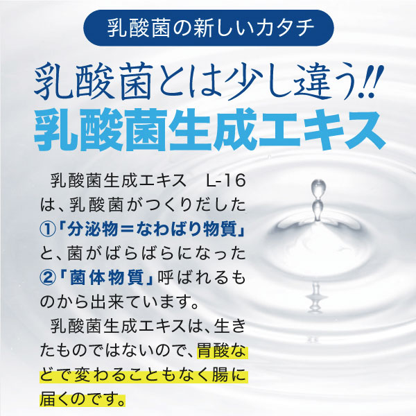 厳選した16種類の乳酸菌から分泌されたエキスが、生まれた時から定着する乳酸菌を育み、体の内側からあなたのキレイをしっかりとサポート。