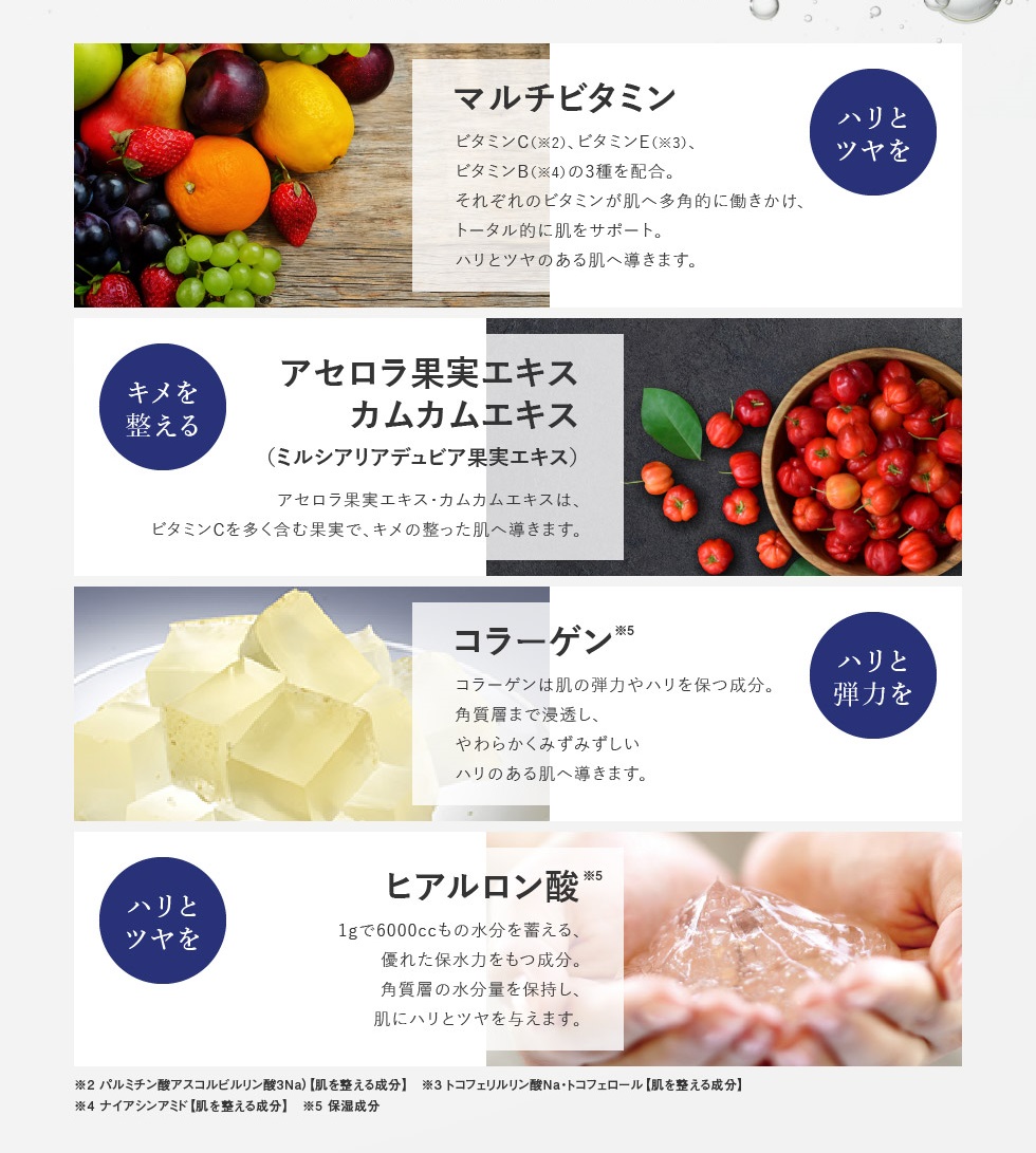 さらにマルチビタミンやコラーゲン、ヒアルロン酸などの保湿成分も配合。