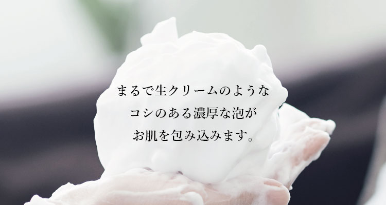 もっちり濃厚・濃密泡が肌を優しく包み込み、肌本来の美しさを取り戻した、健やかなつるり肌へと導きます。