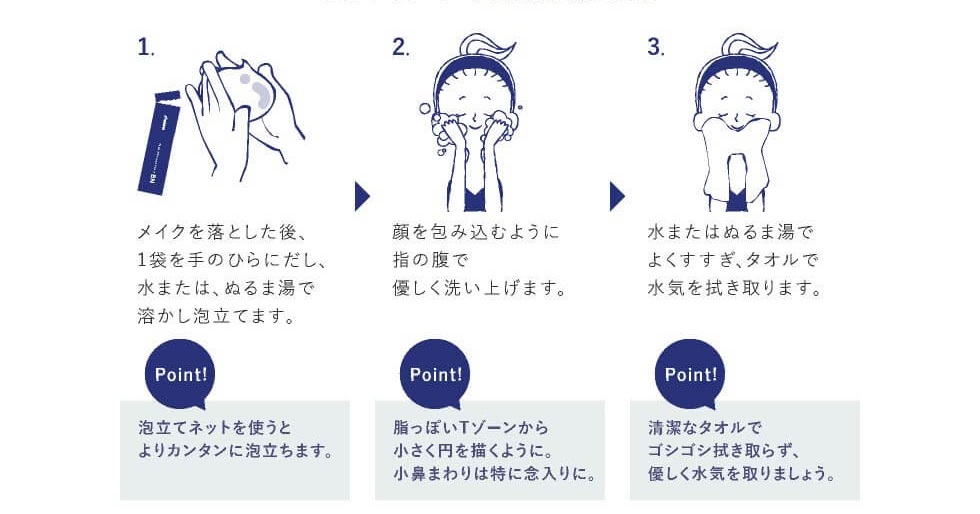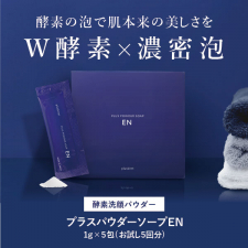 肌のゴワつきやザラつき、くすみの原因となる古い角質を分解する「プロテアーゼ*」と、余分な皮脂や黒ずみの原因となる毛穴汚れを分解する「リパーゼ*」2つの酵素を配合した、パウダー状の洗顔石鹸です。