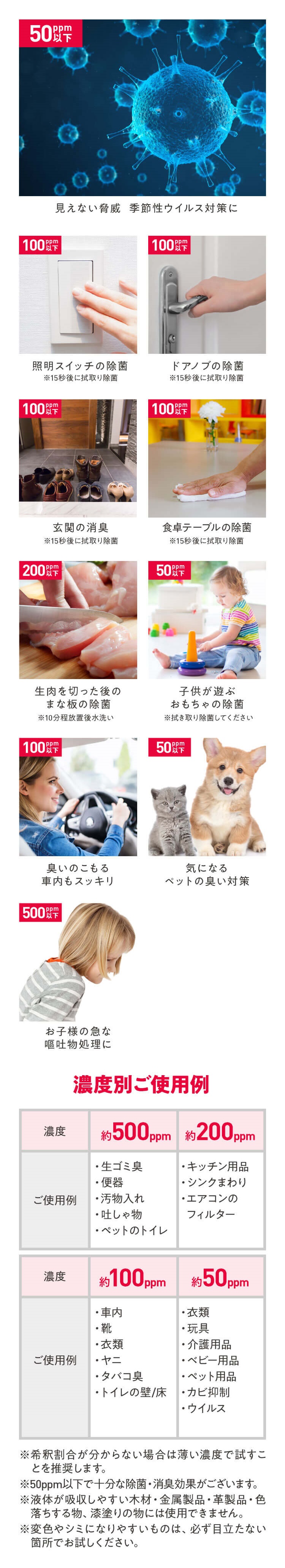 ○本製品はアルコールや薬品、ポリヘキサメチレングアニジン塩酸塩(PHMG)等は一切使用していません。