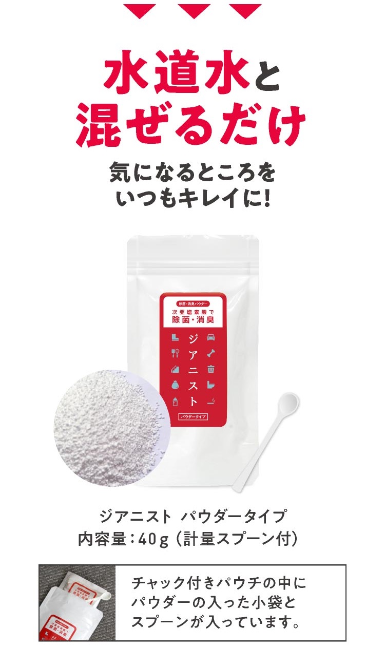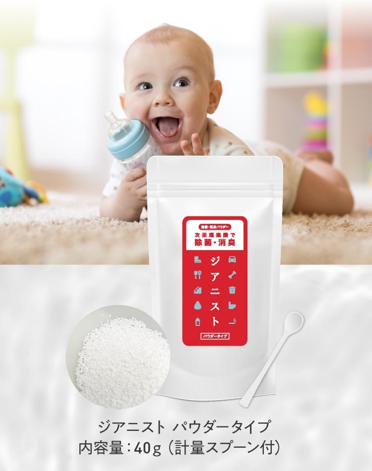 見えない脅威から大切な人を守りたいあなたに。「ジアニスト 除菌消臭パウダー」はこのような特徴があります。