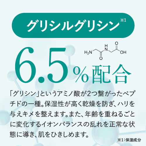 グリシルグリシン(※1)を6.5%配合したサラサラなテクスチャーの先行美容液です。