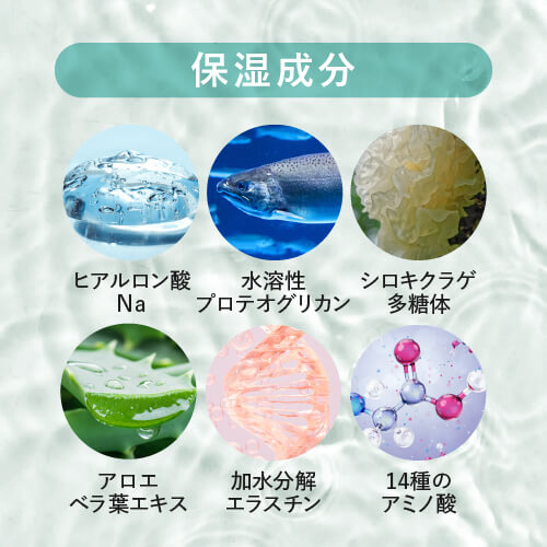 ※5 PCA-Na、乳酸Na、アルギニン、アスパラギン酸、PCA、グリシン、アラニン、セリン、バリン、イソロイシン、トレオニン、プロリン、ヒスチジン、フェニルアラニン(保湿成分)