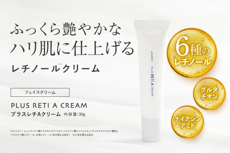 純粋レチノール(*1)、グラナクティブレチノイド(*2)など、シリーズ最高峰、6種のレチノール(*3)をバランスよく配合しました。ふっくら艶やかなハリ肌に仕上げるレチノール(*1)クリームです。