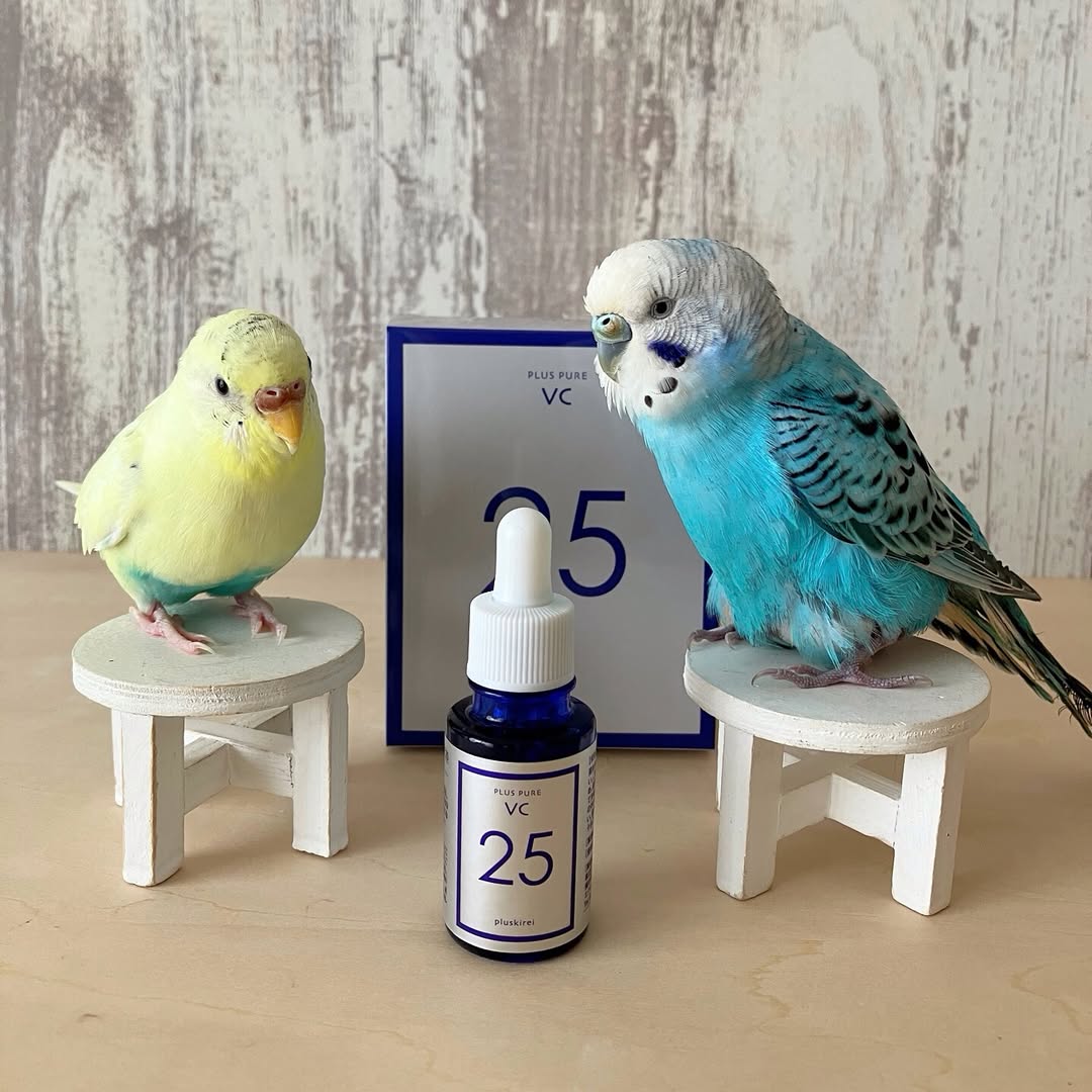 『プラスピュアVC25』で、ママのお肌がキレイになるぞ!🐥😊🐥 . 『プラスピュアVC25』は、ピュアビタミンCを25%高濃度で配合した美容液です。 くすみ、シワが気になる目元や口元に少量付けると、毛穴にしっかり浸透してくれます。肌に乗せた途端じんわりと温かいのも特徴的です。肌を乾燥からも守ってくれるので、毎日愛用しています。 . 株式会社エクセレントメディカルさん、ありがとうございました。☺️ . 今回も、メルとララが張り切ってモデルさんをしてくれました。ありがとう!🐥🐥💕😍 . #PR #エクセレントメディカル #pluskirei #プラスキレイ #プラスピュアVC25 #ピュアビタミンC #ビタミンC美容液 #エイジングケア #スキンケア #毛穴ケア #ドクターズコスメ #monipla #pycno_fan #セキセイインコ #インコ #budgie #budgerigar #birdlife @ekumede @pluskirei