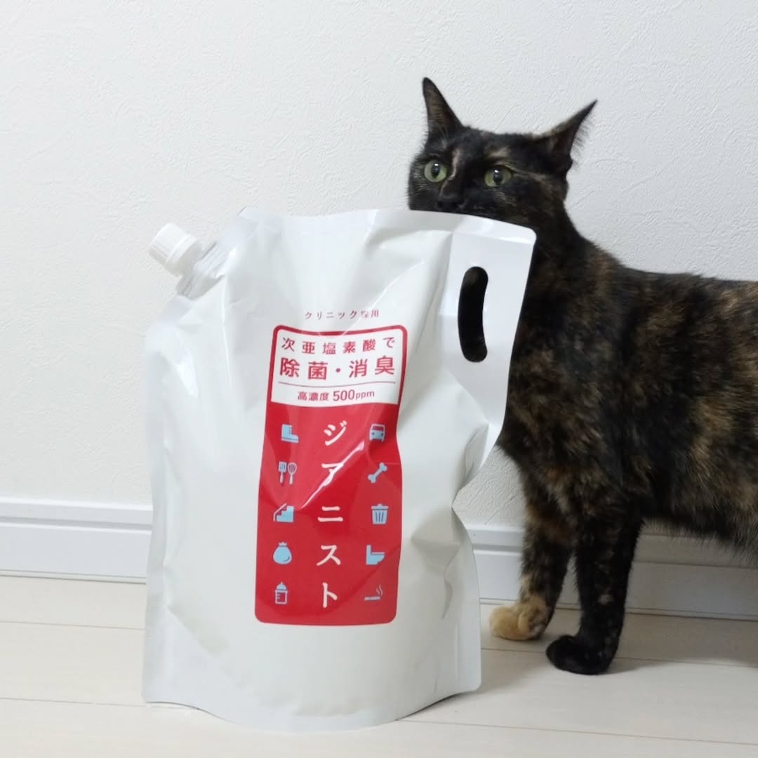 * 次亜塩素酸「ジアニスト」 2.5Lパウチタイプ大容量のジアニスト 2.5Lは大きいですね! ねこもびっくりのサイズ感です トイレやキッチン、寝室、玄関 ペット用品、赤ちゃん用品など 幅広いものの除菌・消臭に使えます 使う場所や用途に応じて、 原液(有効塩素濃度500mmp強)でもOK 水道水で希釈してもOK うちにはねこがいます🐈 ねこのトイレやベッド、おもちゃなどには 10倍希釈したものを使用しています カーテンやラグもまとめてシュシュッ🫧 次亜塩素酸水溶液は、有機物に触れるとウイルスや菌を分解して最後は水に戻るそう💧 安心して使うことができます♡ 赤ちゃんやペットがいても安心ですね👶🐈️ 用途によって希釈率が異なるので、 ①原液 ②5倍希釈 ③10倍希釈 3本のボトルを置いています たっぷりサイズがありがたい☺️ #PR #エクセレントメディカル #ジアニスト #次亜塩素酸水 #次亜塩素酸 #ペット消臭 #ペット消臭剤 #ペットアイテム #除菌グッズ #除菌アイテム #ウイルス対策 #monipla #pycno_fan