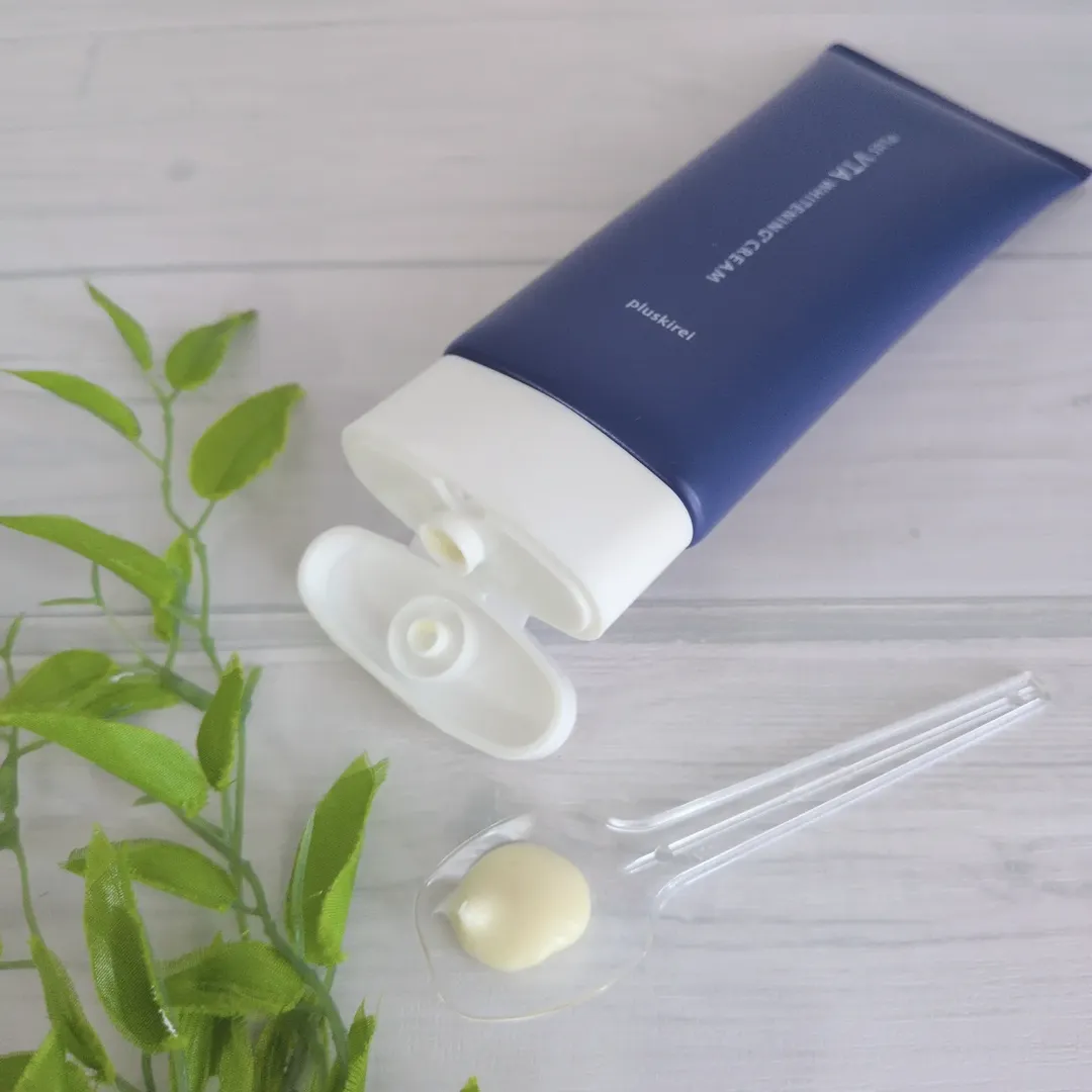 #PR #エクセレントメディカル #pluskirei #プラスキレイ #プラスVTAホワイトニングクリーム #保湿クリーム #美白ケア #肌荒れケア #トラネキサム酸 #アルブチン #VCエチル #グリチルリチン酸ジカリウム #monipla #pycno_fan プラスキレイ プラスVTAホワイトニングクリーム 100g(約2ヶ月分) 大人の艶肌に欠かせない『透明感』『肌荒れ(※1)』『潤い』を同時ケアする濃厚保湿クリームです。 シミの原因(※2)・くすみ(※3)・肌荒れ(※1)へ徹底アプローチ! 4つの有効成分で増えてきたお悩みへ多角的に働きかけてくれ、W美白(※2)有効成分【アルブチン(ハイドロキノン誘導体)】【VCエチル:ビタミンC誘導体(※4)】がシミの元(※2)へ多角的にアプローチしてくれるそうです。 ※1:肌荒れ・ニキビを防ぐ ※2:メラニンの生成を抑え、しみ・そばかすを防ぐ ※3:乾燥による ※4:3-O-エチルアスコルビン酸 チューブタイプで、片手で開閉できるキャップです。 自立するタイプで、容器がぺったんこなので押す力が少なくて済みます。 こっくりとしたクリームで、なめらかなテクスチャです。 顔だけではなく、首やデコルテ、腕・脚にも使うことができます。 使用量にもよりますが、べたつくことはありません。 少しずつ塗布するといいと思います。 私は乾燥肌なので、このくらいしっとりしていると安心感があります。