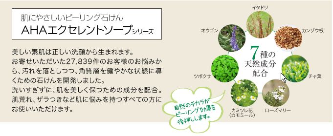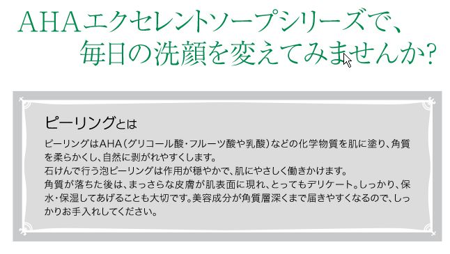 AHAグリコール酸配合のピーリング石けん。